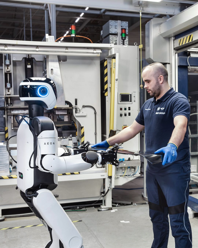 搭载了大寰机器人AG系列电动夹爪的AEON,目前正在宝马莱比锡工厂的电池装配与零部件制造流程中开展测试运行,围绕人形机器人在不同生产环境下的适配能力进行验证。