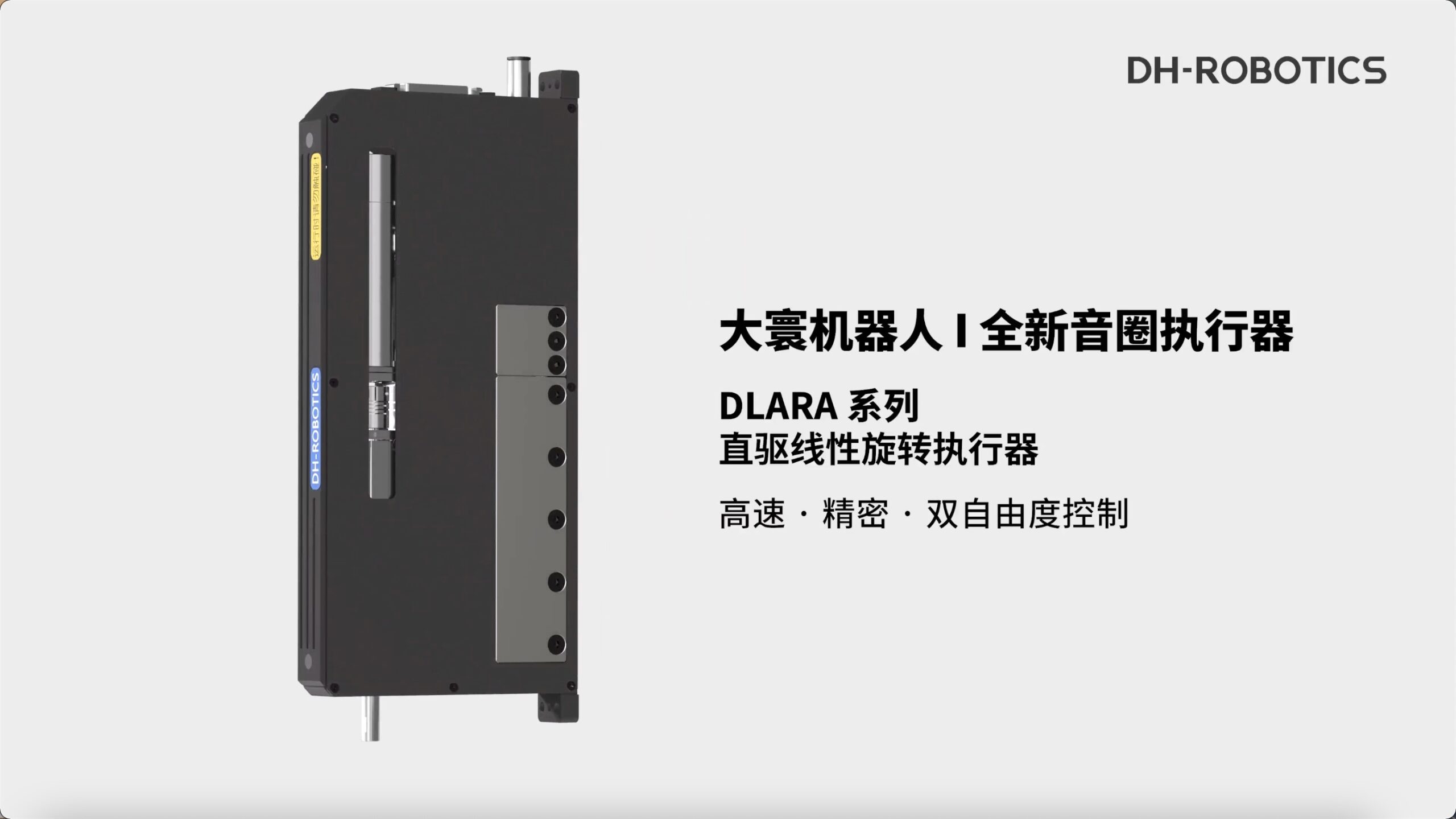 大寰机器人推出的DLARA系列直驱线性旋转执行器,产品设计紧凑轻薄,采用中空轴设计,其特有的Z轴直线+旋转运动,在高速运动的同时配合软着陆功能,实现柔性取放,可适应更丰富的工业场景,如半导体、3C电子、医疗、包装等自动化行业的快速取放、组装、测试、定位、纠偏等应用。